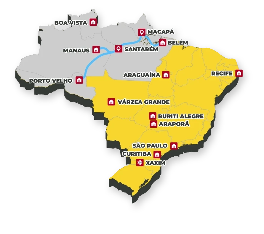 Somos a única empresa de transporte refrigerado a estar presente nas principais capitais da região amazônica. Contando com equipe especializada e tecnologias de ponta para entregar seu produto de forma ágil e segura. Nós proporcionamos as melhores soluções logísticas nas rotas de Norte a Sul.