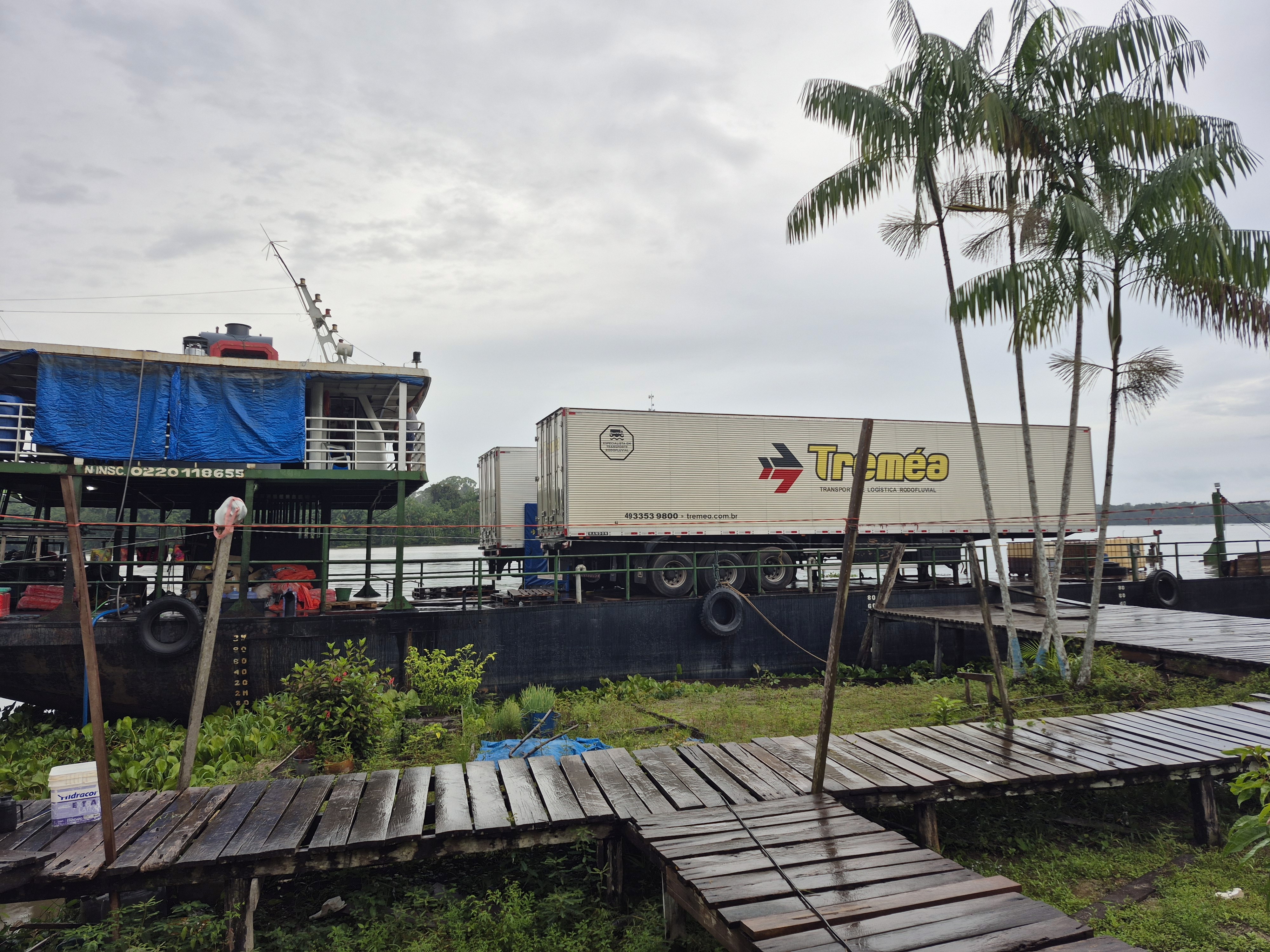 Utilizando balsas para o deslocamento dos veículos e planejamento logístico específico para a região, as carretas conseguiram chegar até Anajás, superando os desafios de acesso e infraestrutura.